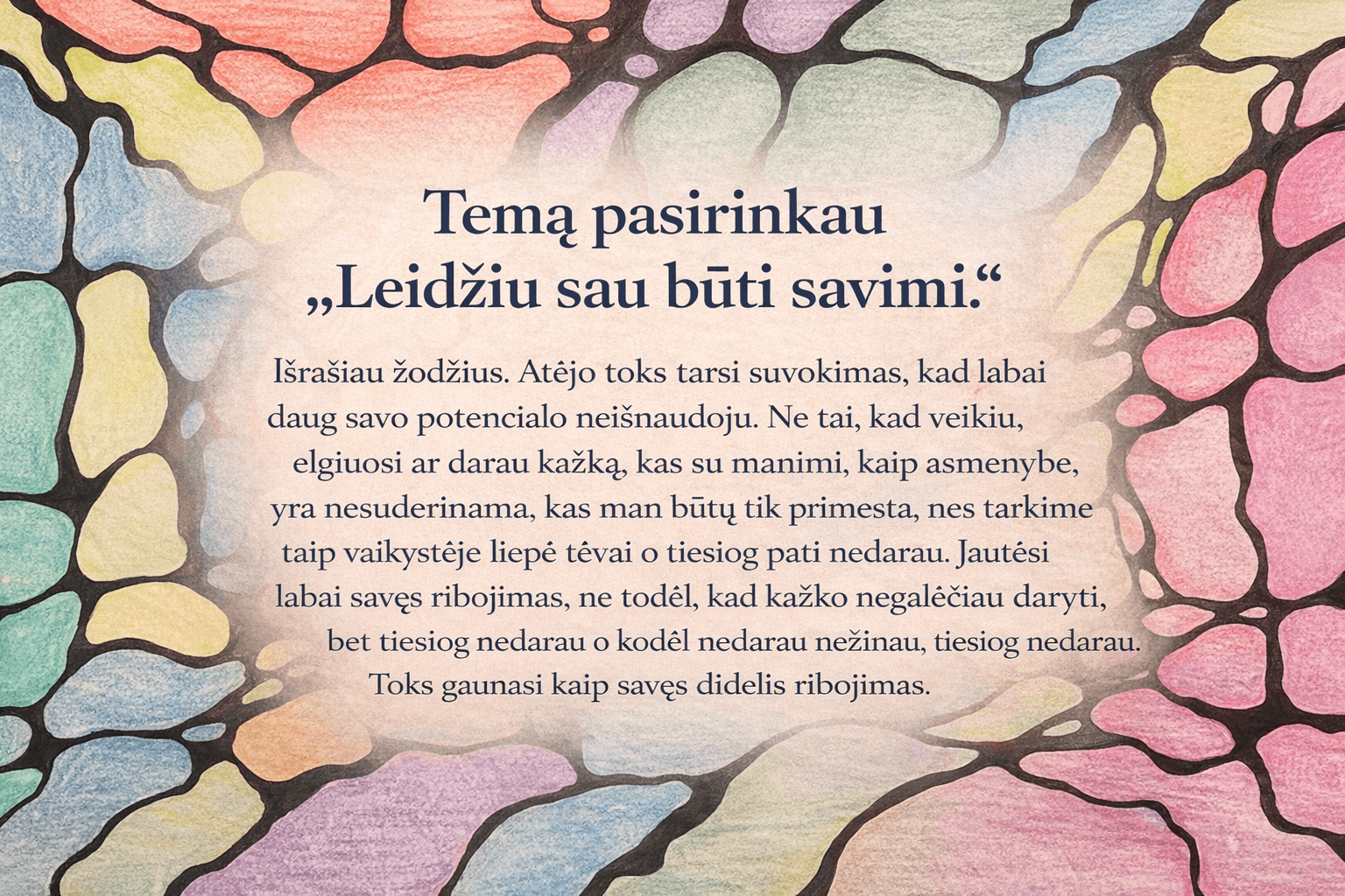 🗣️ „Tai buvo lyg kalbėtis su savo pasąmone - bet be žodžių. Piešdama supratau, kas mane iš tikro stabdo.“ - Aistė
