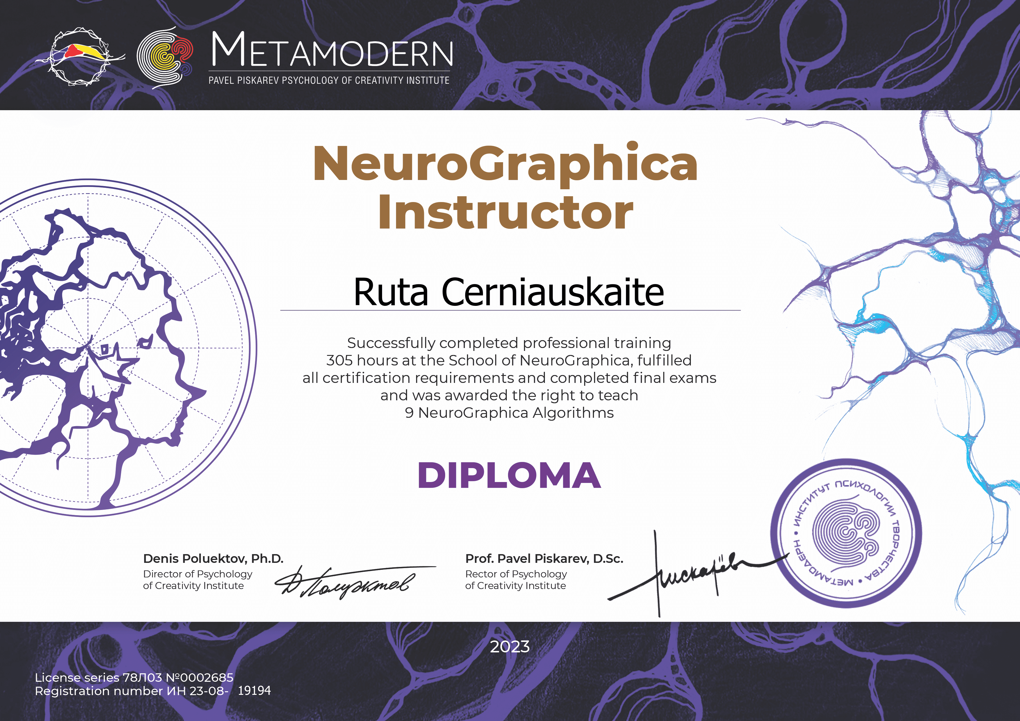 - Sertifikuota Neurgrafikos mokytoja, oficiali instituto supervizorė.